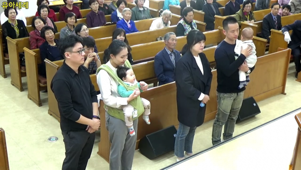 2018.4.1 세례예식 세례 : 김일용 유아세례 : 이한결(이상휴 채순복) 김도희(김창대 이승현) 김하윤(김영휴 한가람) 김세준(김상범 천지예)