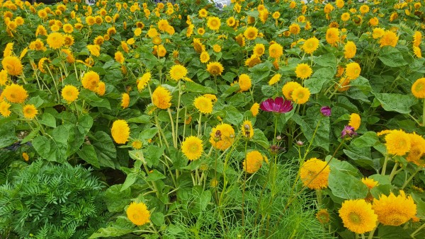 교회 종탑 화단 해바라기