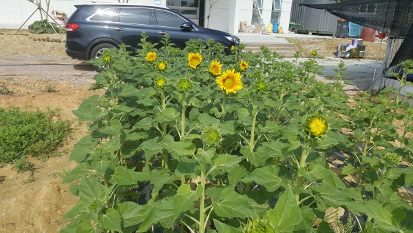 교회 해바라기 첫 개화^^