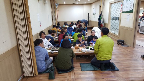 2남선교회 꽃구경후 식사모습